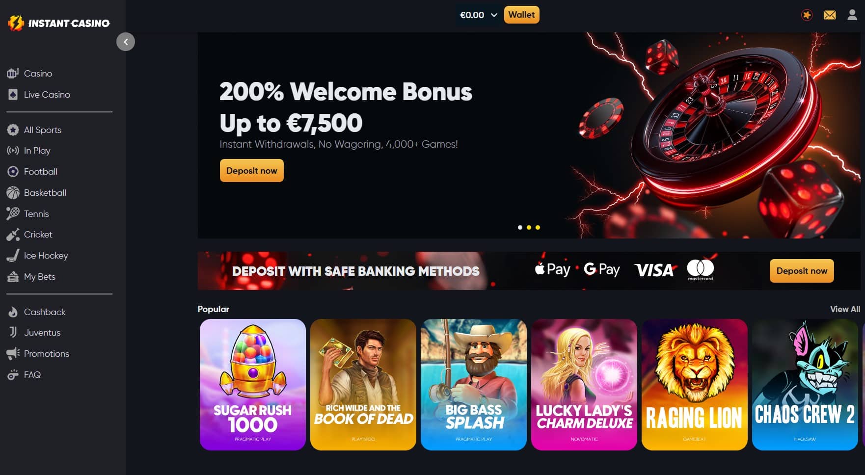 Si vous préférez les achats en cryptomonnaie, vous pouvez utiliser vos portefeuilles Bitcoin, Ethereum, Solana ou Secure pour vos dépôts et retraits. Le grand nombre d’options de transaction fiables et sécurisées témoigne à lui seul de la légitimité du site Instant Casino. De plus, tous les achats sont rapides et sans frais sur les dépôts.